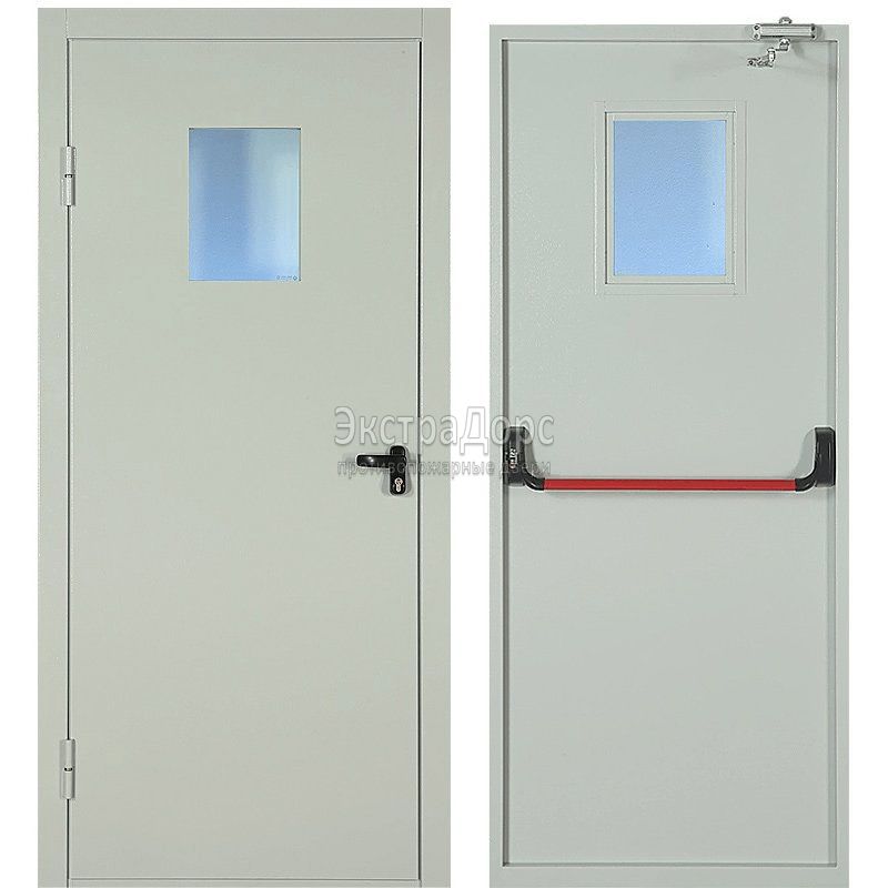 Противопожарная дверь EI 60 газодымонепроницаемая со стеклом и антипаникой