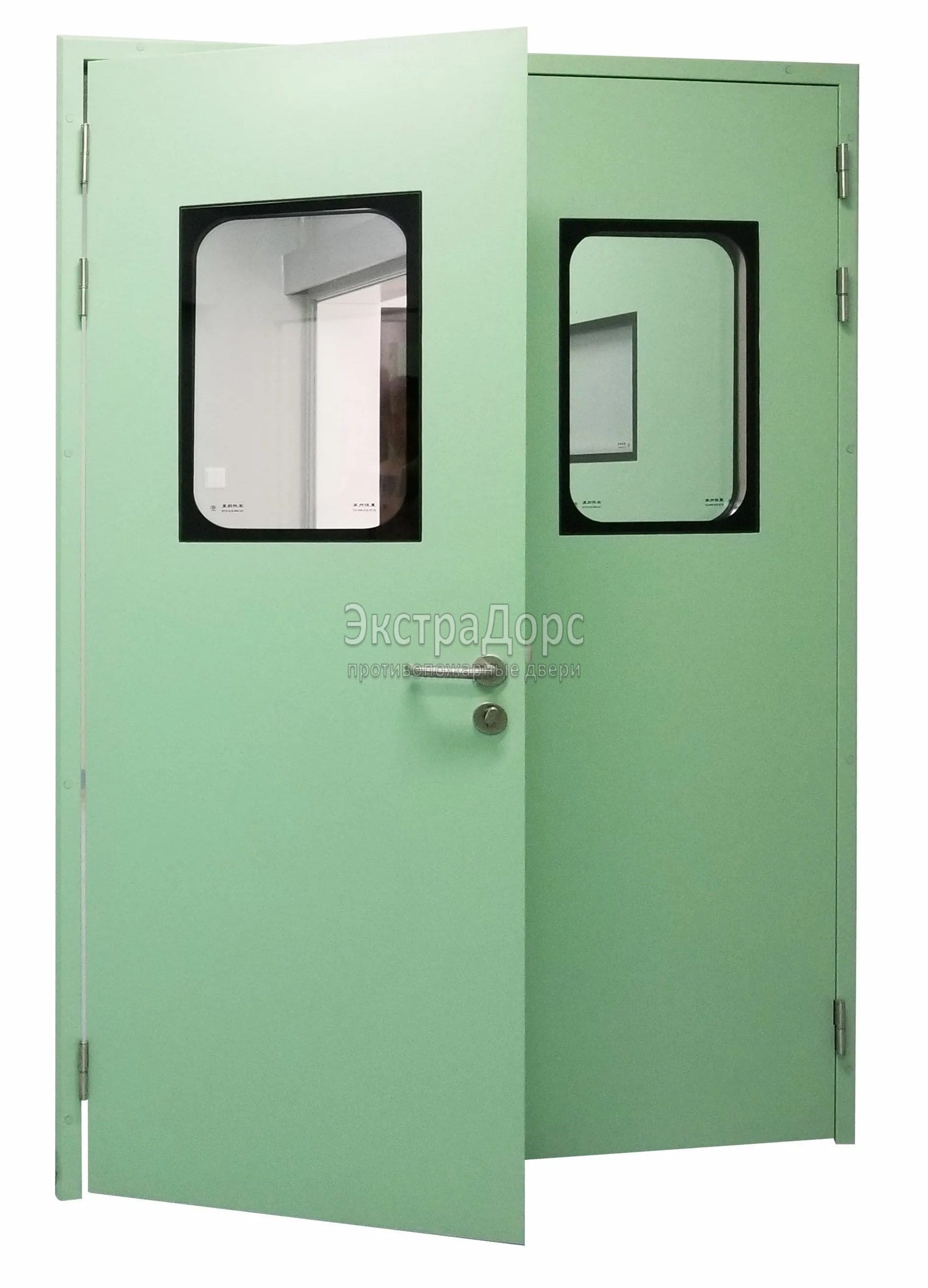 Двухстворчатая огнестойкая дверь EIW 60 зеленая со стеклом в Можайске