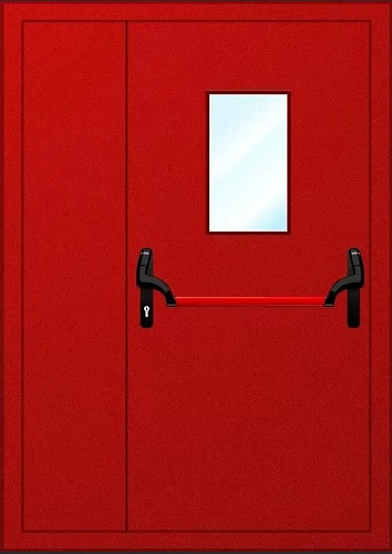 Дверь противопожарная полуторная правая со стеклом
