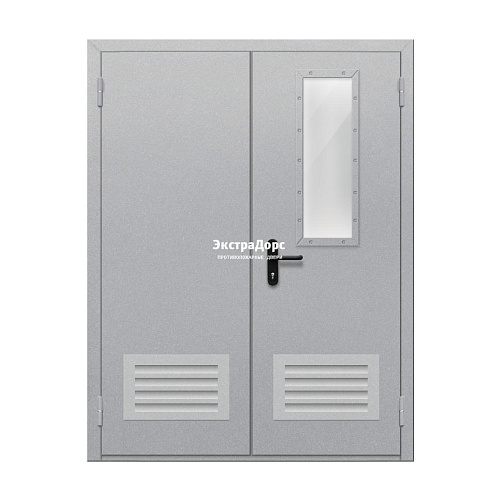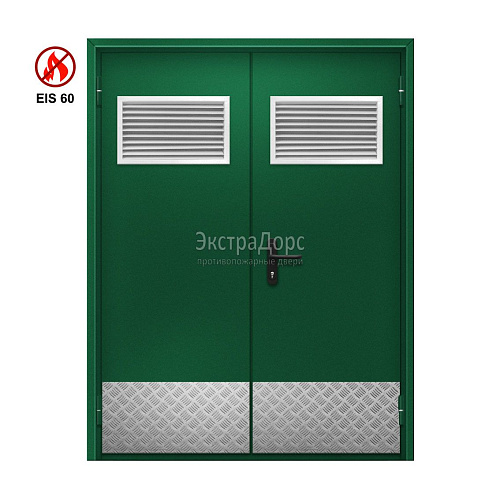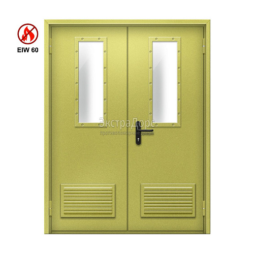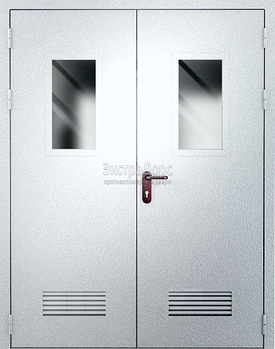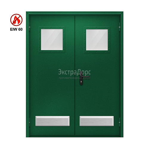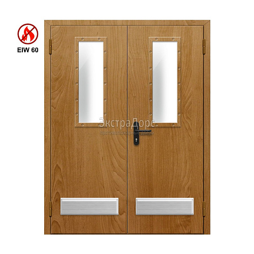 Двухстворчатая огнестойкая дверь с двумя решетками EIW 60 ДПМ-02-EIW-60 ДП75 двупольная остекленная