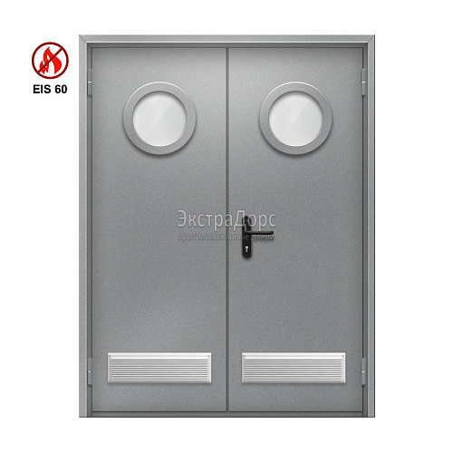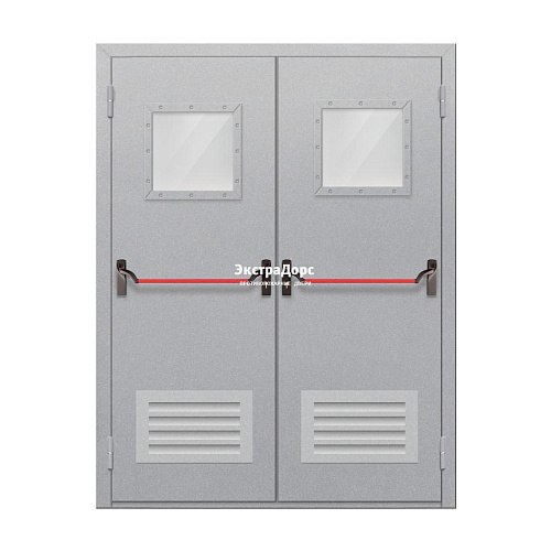 Двупольная огнестойкая дверь с решёткой EI 30 ДО-02-EI-30 двупольная остеклённая с иллюминаторами и антипаниками