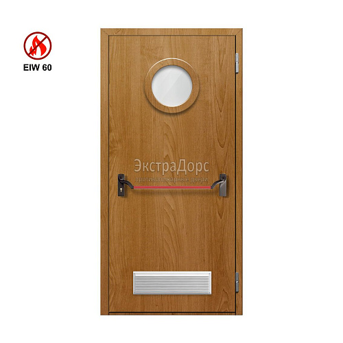 Противопожарная дверь с решёткой EI 60 ДО-01-EI-60 однопольная остеклённая с антипаникой и иллюминатором
