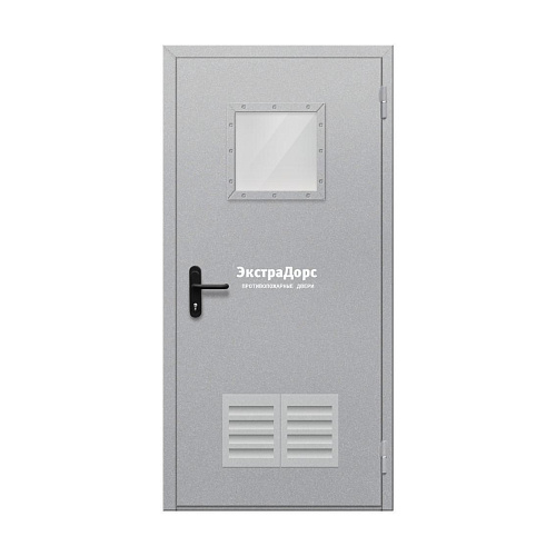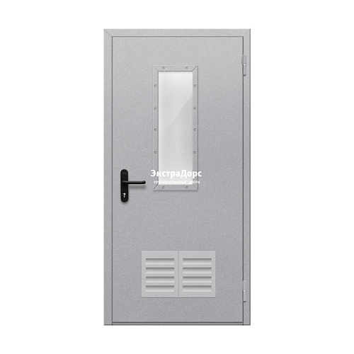 Дверь противопожарная металлическая однопольная EI 60 ДО-01-EI-60 остеклённая с решёткой и прямоугольным окном