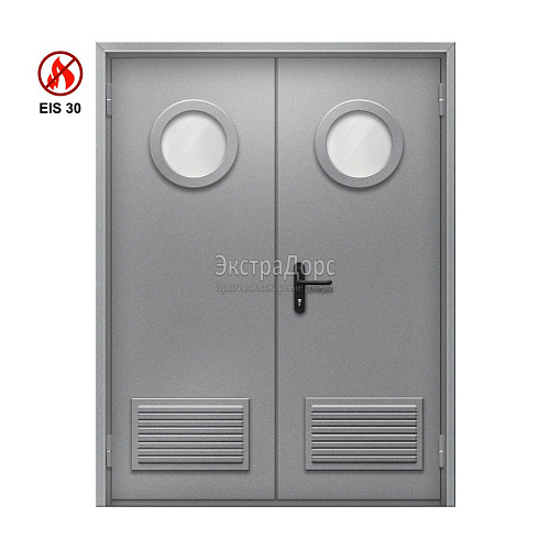 Двупольная противопожарная дверь EI 30 ДО-02-EI-30 двупольная остеклённая с круглым окном и решёткой