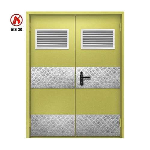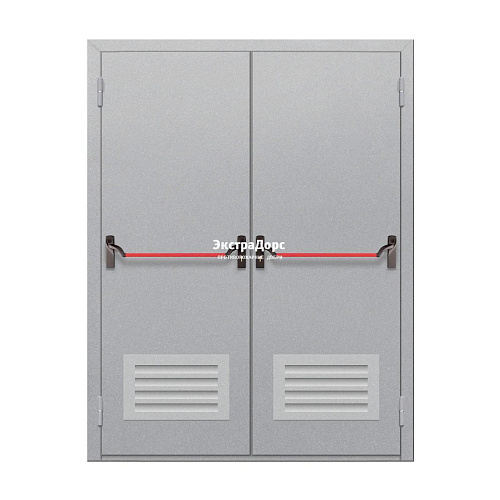 Двухстворчатая огнеупорная дверь EI 30 ДГ-02-EI-30 двупольная глухая с решётками и антипаникой