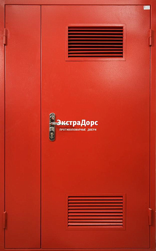 Противопожарная дверь с решетками EI 60 ДПМ-02 двупольная красная