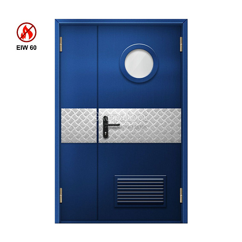 Противопожарная дверь EI 30 ДО-02-EI-30 полуторная остеклённая с иллюминатором и решёткой