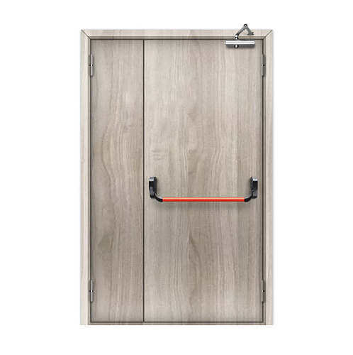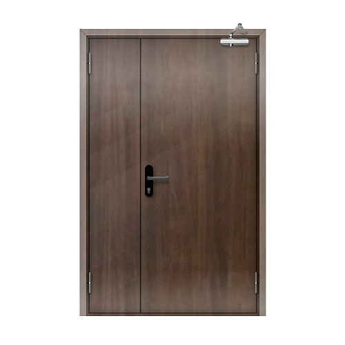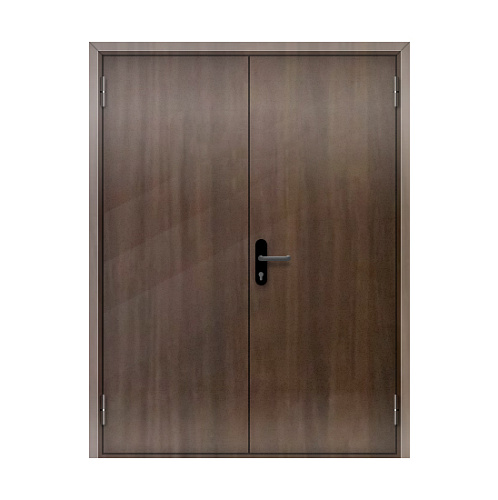 Огнестойкая дверь шпонированная EI 60 глухая двупольная с антипаникой цвет Орех Винтаж
