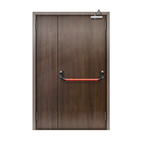 Противопожарная дверь шпон EI 30 глухая двупольная с антипаникой цвет Венге