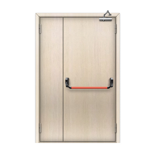 Противопожарная дверь шпонированная 3-го типа глухая двупольная с антипаникой цвет Бук