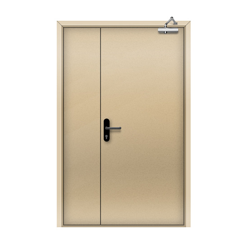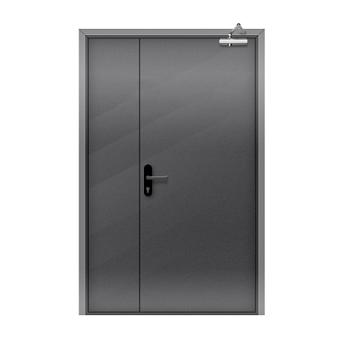 Противопожарная дверь со скрытыми петлями 3-го типа глухая двупольная с антипаникой