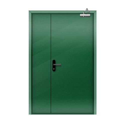 Огнеупорная дверь со скрытыми петлями 3-го типа полуторная цвет RAL 5005