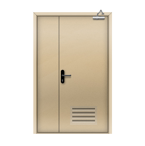 Огнестойкая дверь со скрытыми петлями 3-го типа глухая полуторная с вентиляцией