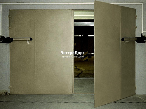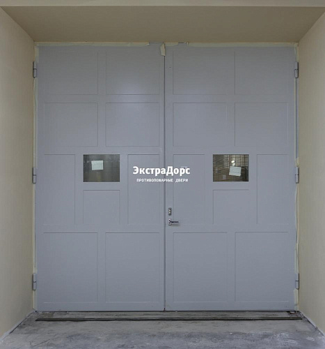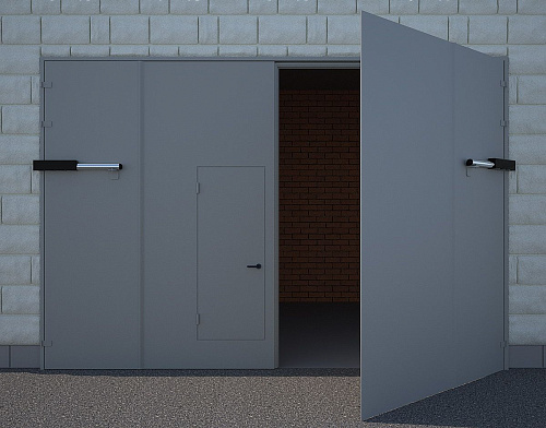 Двухсекционные противопожарные ворота серые распашные