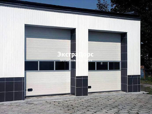Подъемные промышленные противопожарные ворота с окнами с порошковой окраской