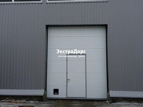 Секционные подъемные противопожарные ворота с калиткой и окном