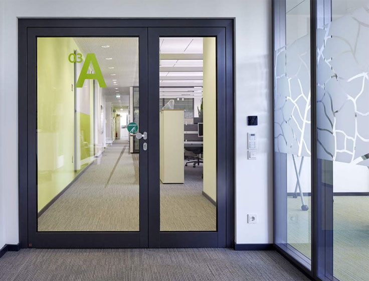 Противопожарная алюминиевая дверь со стеклом для офиса в Можайске