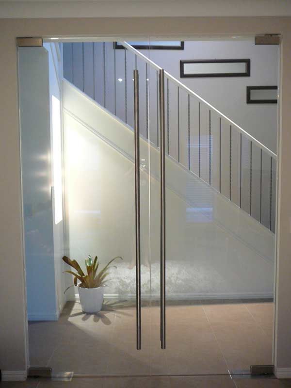 Противопожарная безрамная дверь со стеклом в частный дом в Можайске