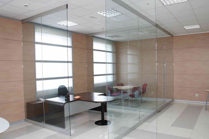 Противопожарная безрамная дверь в переговорную в Можайске